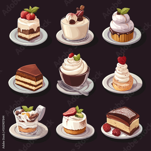 Assorted Desserts: Cakes, Trifles, Puddings with Berries and Whipped Cream