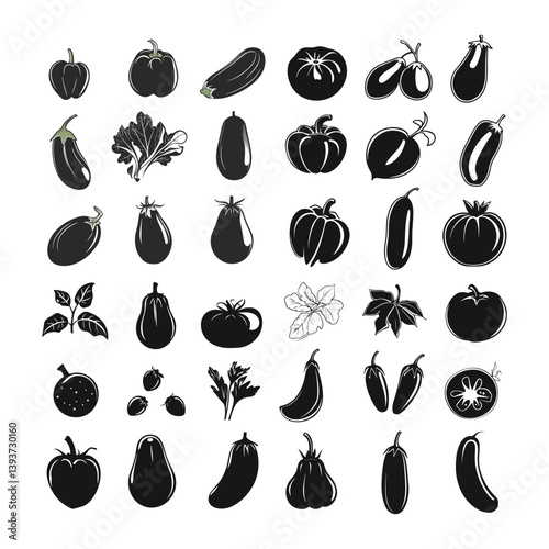 Assorted Fruit and Vegetable Silhouettes Collection