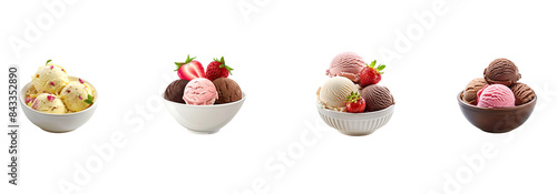 Assorted Ice Cream Scoops in Bowls - Gourmet Dessert Collection Strawberry, Vanilla, Chocolate Delights isolated on a transparent or white background, PNG