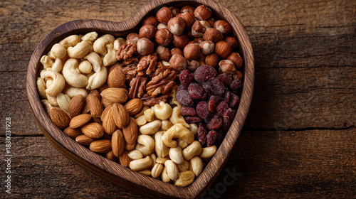 "Assorted Nuts in a Heart-Shaped Bowl – Healthy Snack Concept"