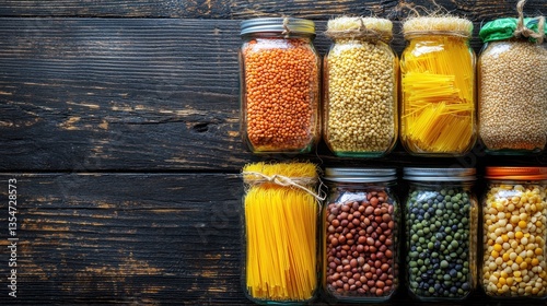 Assortment of Legumes and Pasta in Glass Jars