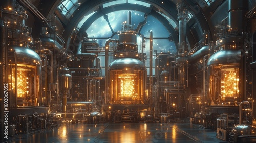Asteroid Refinery Interior: Centrifuges Processing Platinum Ore for Space Mining Industry