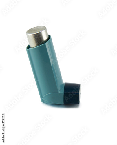 Asthma inhaler isolated on a white background.