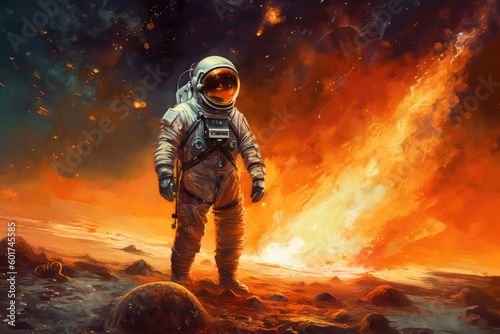 astronaut, beautiful, sky, planet, astronomy, adventure, backpack, oxygen tank, observatory, astrology, effect, outside, astro, space, space suit, flames, burn, fire, hot, heat, burnt, danger, burning, damage