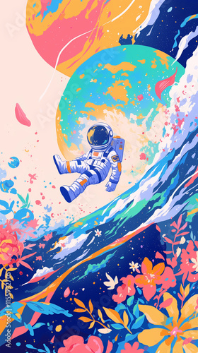 Astronaut Floating Through a Colorful Cosmic Garden background