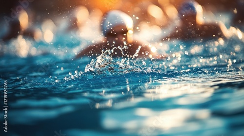 Athletes competing in the swimming pool