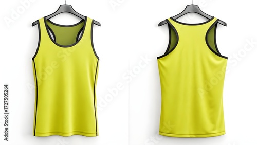Athletic Apparel Mockup Front and Back View of a Yellow Tank Top, Perfect for Sports and Fitness Branding, with Customizable Design Options