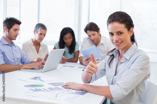 Attractive businesswoman giving the thumb of approval