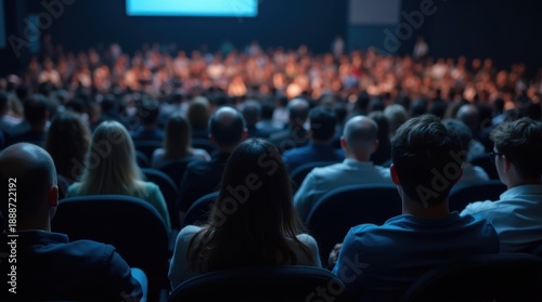 Audience members watching a presentation lecture or other event from their seats