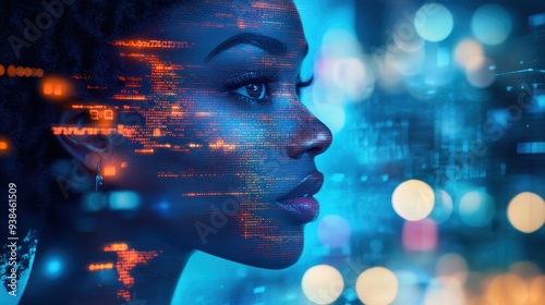 Augmented reality cyber protection concept with African American IT expert