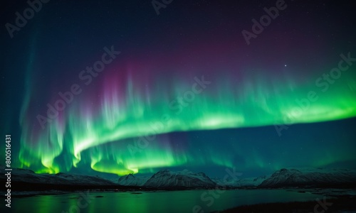 Aurora borealis, northern lights over mountains in winter, Iceland