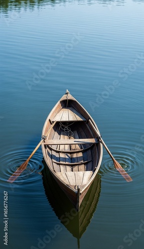 Aus der Vogelperspektive sieht man ein hölzernes Ruderboot