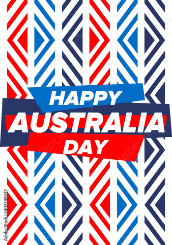 Australia Day. National happy holiday, celebrated annual in January 26. Australian patriotic elements. Kangaroo silhouette. Poster, card, banner and background. Vector illustration