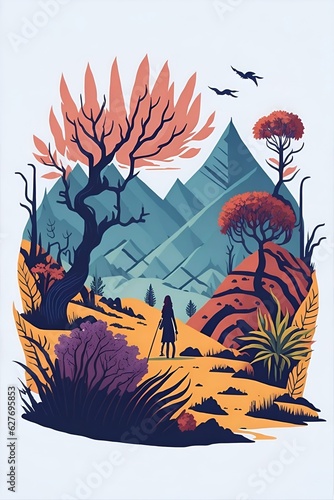 Australian landscape. Cartoon fairy tale style. AI generated illustration