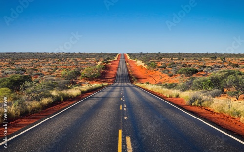 Australian Outback Road with Space for Text Under a Clear Blue Sky