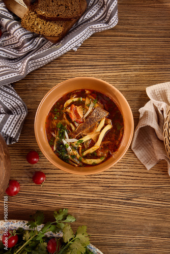 Authentic Beef Lagman Soup with Fresh Vegetables and Herbs