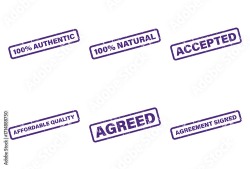 Authentic Natural Agreed Accepted Signed Rectangular Purple Stamp White Background