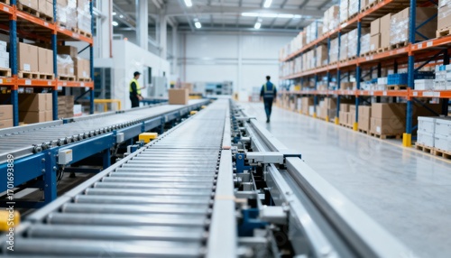 Automated Conveyor System in a Modern Distribution Warehouse Streamlining Logistics and Order Fulfillment Efficiency