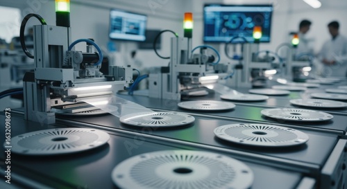 Automated lamination machines sealing protective films on highfrequency underwater acoustic modem transducers in a controlled production setup.