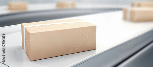 Automated Shipping Process Concept. Cardboard Boxes Moving on Conveyor Belt in Distribution Warehouse.