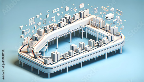 Automated Shopping Flow: Minimalist 3D Conveyor Concept