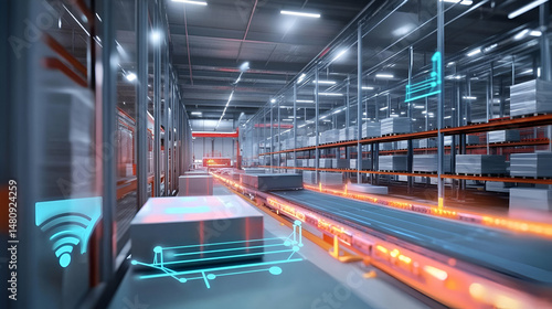 Automated Warehouse with Conveyor Belt System and Digital Interface