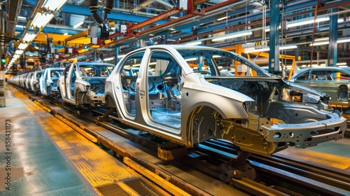 Automotive assembly line in a modern manufacturing facility