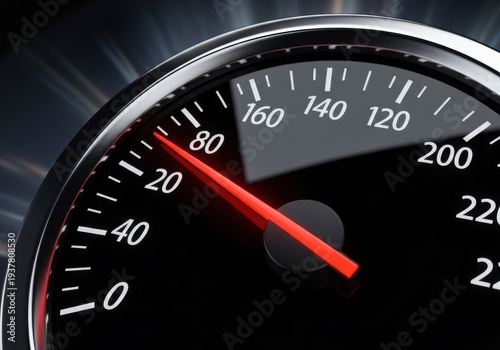 Automotive speed indicator needle points to eighty on a dark dashboard gauge