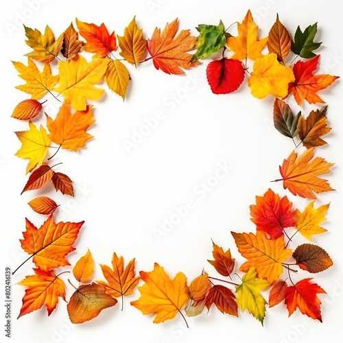 Autumn colorful leaves frame border isolated on white background