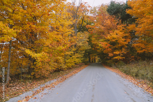 Autumn country road, Vermont Leaf peeping. Autumn in New England is known for its vibrant colors and picturesque beauty. USA barns, farmhouses