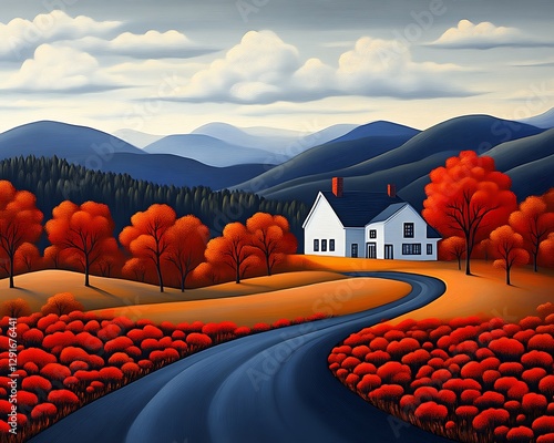 Autumn Countryside Home Road Landscape