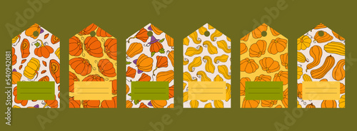 Autumn design template, hand drawn pumpkins, flat vector illustration