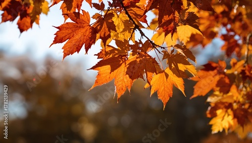 Autumn foliage illuminated by sunlight, creating a natural backdrop for design