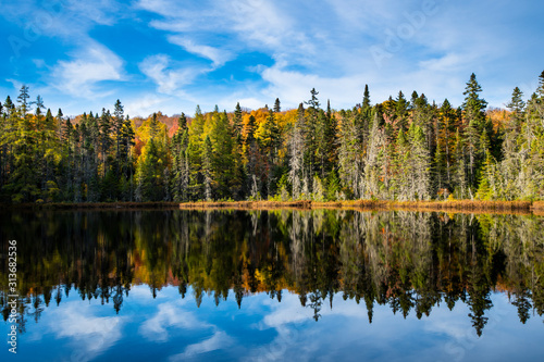 Autumn forest lake reflection landscape