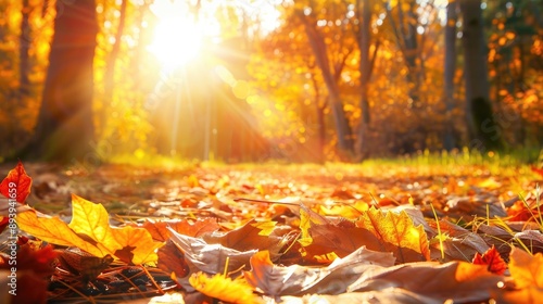 Autumn Forest with Sunny Weather and Fallen Leaves