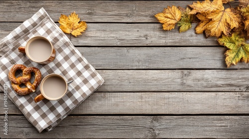 Autumn Harvest Festival with Pretzels, Hops, and Colorful Leaves