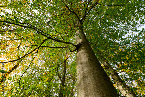 Autumn in the park, colorful tree leaves, wide angle view autumn scene
