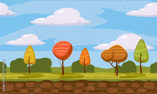 Autumn landscape trees and fall leaves, similar, vector illustration, cartoon style, isolated