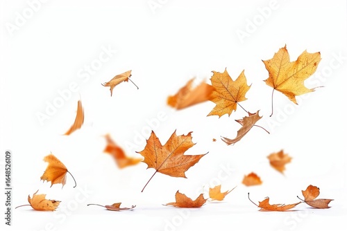 Autumn leaves falling white background