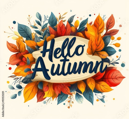 Autumn Leaves Illustration with Hello Autumn Text
