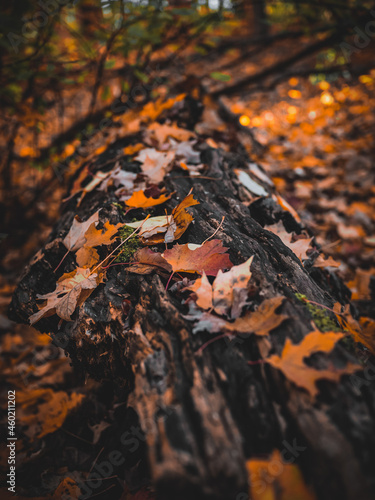 autumn leaves on a log