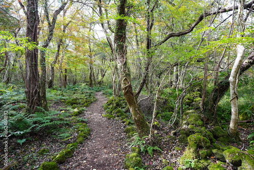 autumn path through old wild forest