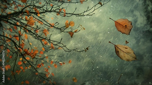 Autumn Rain And Falling Leaves