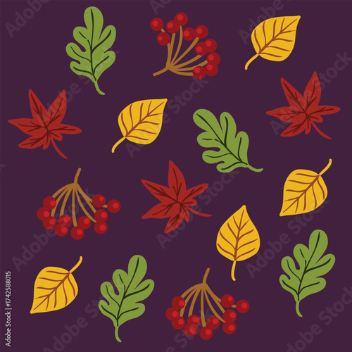 autumn seamless pattern of autumn leaves on a black background