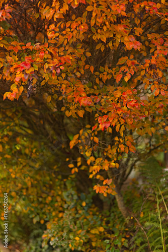 Autumnal tree with yellow, orange and red leaves. Natural background with autumnal colors