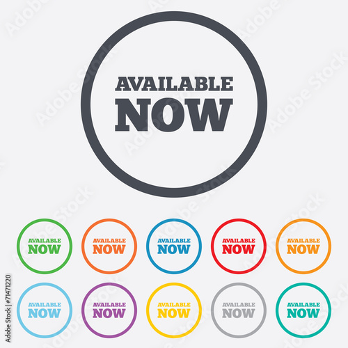 Available now icon. Shopping button.