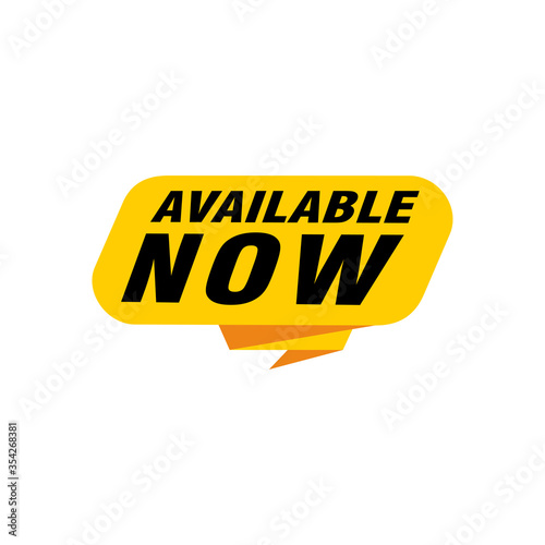 Available now label, badge, seal or burst flat vector icon for apps and websites