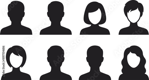 Avatar Profile Silhouette Set Male Female Heads Faces User Icons Default Portrait Collection Black Vector Isolated Editable Pack