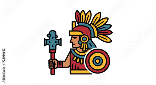 Aztec Warrior with Feathered Headdress and Shield.