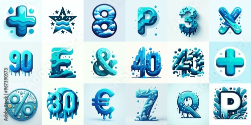 Azure Lettering Typeface. AI generated illustration